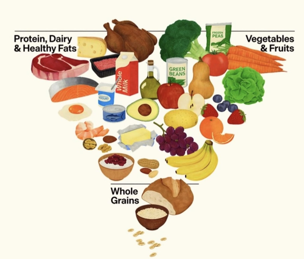 Если коротко, главный слоган новых рекомендаций звучит как «ешьте настоящую еду». Авторы предлагают строить рацион вокруг цельных, минимально обработанных продуктов: овощей, фруктов, цельных злаков, нормальных источников белка и жиров. Отдельно подчёркивают, что ультраобработанные продукты вроде чипсов, печенья, сладких батончиков, сладких напитков и всего «готового из пачки» стоит есть как можно реже.