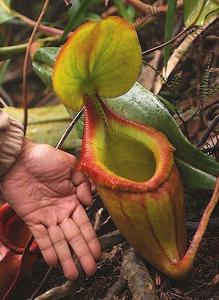 Это тропическое растение обладает листьями-кувшинами, наполненными жидкостью. Внутри кувшина находятся скользкие стенки, препятствующие побегу попавших внутрь существ.