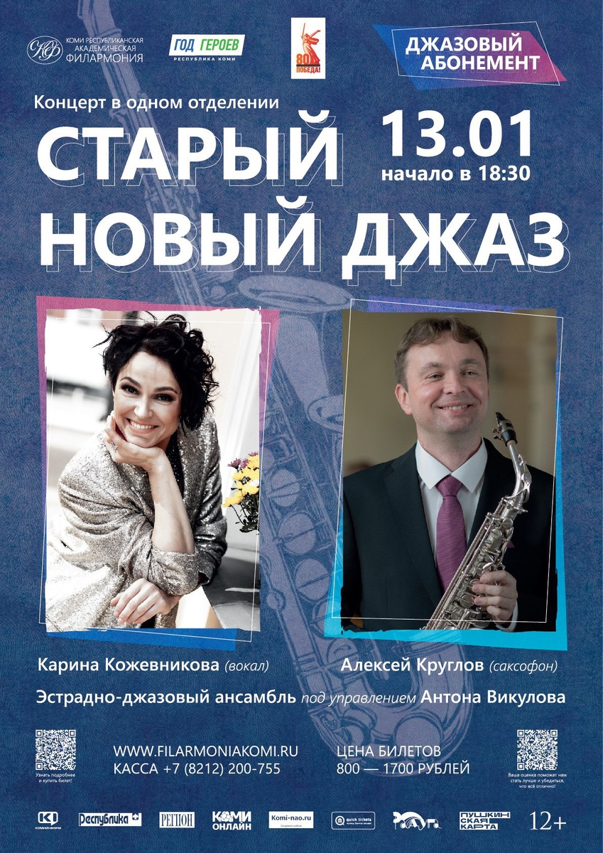 Завтра с Кариной и ансамблем Антона Викулова празднуем Старый Новый год на сцене Республиканской филармонии Коми в Сыктывкаре! Приглашаем дорогих почитателей джаза! До встречи!