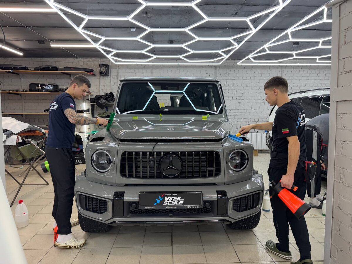 В матовом исполнении на золотых дисках этот Mercedes-Benz G63 выглядит по-настоящему эффектно. Выбирая матовую полиуретановую плёнку, вы получаете не только дерзкий стайлинг, но и надёжную защиту кузова от механических повреждений. В качестве материала мы предлагаем три варианта полиуретановой плёнки: цветную, глянцевую и матовую — как в данном проекте.