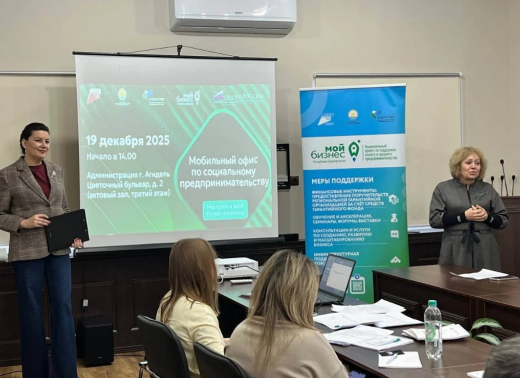 В конце 2025 года прошло заключительное выездное заседание мобильного офиса поддержки социального предпринимательства в Башкортостане. Встреча собрала порядка 30 представителей малого и среднего бизнеса, а также самозанятых граждан из городов Нефтекамск и Агидель, Дюртюлинского, Краснокамского и Татышлинского районов. Мобильные выезды организованы по нацпроекту «Эффективная и конкурентная экономика». — Выездные мероприятия Центра «Мой бизнес» служат важным каналом информирования жителей республики о перспективах развития бизнеса, в том числе социального предпринимательства. В текущем году тематические выезды мобильного офиса провели работу в 24 муниципальных образованиях, в них приняли участие порядка 200 представителей социального бизнеса, — подчеркнула министр предпринимательства и туризма Республики Башкортостан Светлана Верещагина.