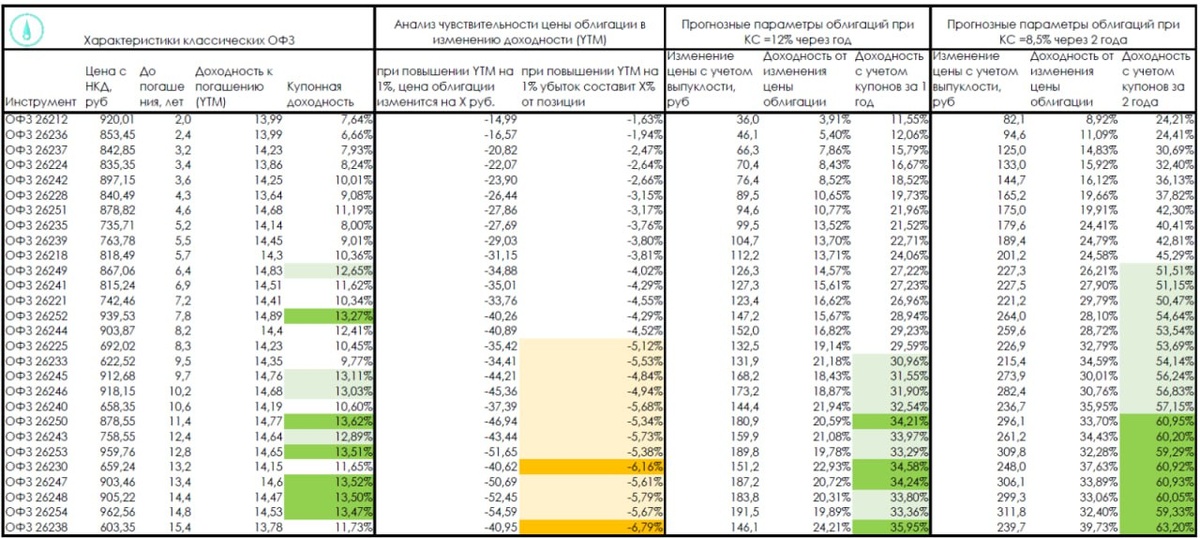 Анализ чувствительности классических ОФЗ к изменению доходностей