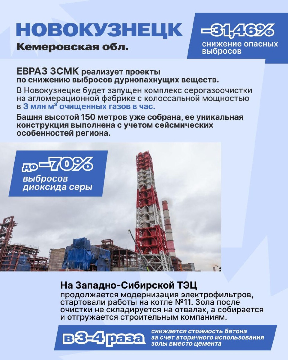 Посмотрели экологические достопримечательности и вам советуем, листайте наши карточки ⚡️ 🔵В Новокузнецке ЕВРАЗ ЗСМК строит 150-метровую сейсмоустойчивую башню, не для украшения, а чтобы сократить выбросы диоксида серы. Газоочистная установка обладает колоссальной мощностью в 3 млн м3 очищенного воздуха в час — посмотрите какая красивая! 🔵В Нижнем Тагиле ЕВРАЗ НТМК запускает новую технологическую цепочку, которая оградит город от вредных выбросов. Более того, в городе модернизируют котельные и переводят жителей с печного на газовое отопление за счет государства! 🔵В Чите продолжаются работы на масштабном проекте по автономной газификации города. Программа реализуется с использованием технологий сжиженного природного газа — СПГ. Подобная практика является уникальной не только для Забайкальского края, но и для всей страны. Плавно входим в рабочие будни и продолжаем путешествие! ❄️