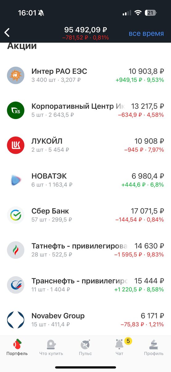 💼 День #266 💰 Всех приветствую! Вот и закончились январские выходные, которые длились практически две недели, можно сказать полноценный отпуск получился, думаю все успели отдохнуть, чтобы с новыми силами погрузиться в работу. По первости, кто работает в офисе или с бумагами - будут делать ошибки в датах, как обычно и бывает в начале года, когда еще не осознаешь, что наступил новый 2026 год. Всем успехов в новом году! Я пополнял счет в выходные и сделал пополнение сегодня, получилось 1 400 рублей с копейками, все-таки на Транснефть мне не хватило, поэтому приобрел другие акции, а именно: 1 акция Белуги 🍷, 1 акция Татнефти ⛽️ - потому что средняя цена в моем портфеле по ним высокая, купить и снизить среднюю - нормальный вариант, хоть и нефтянке больно последнее время 1 акцию Сбербанка 🏦 В общем, портфель продолжает расти в весе, ожидаемом пассивном доходе и даже немного в стоимости, это не может не радовать! Портфель застрял на отметке 94-95 тыс., но при этом ожидаю, что первую це
