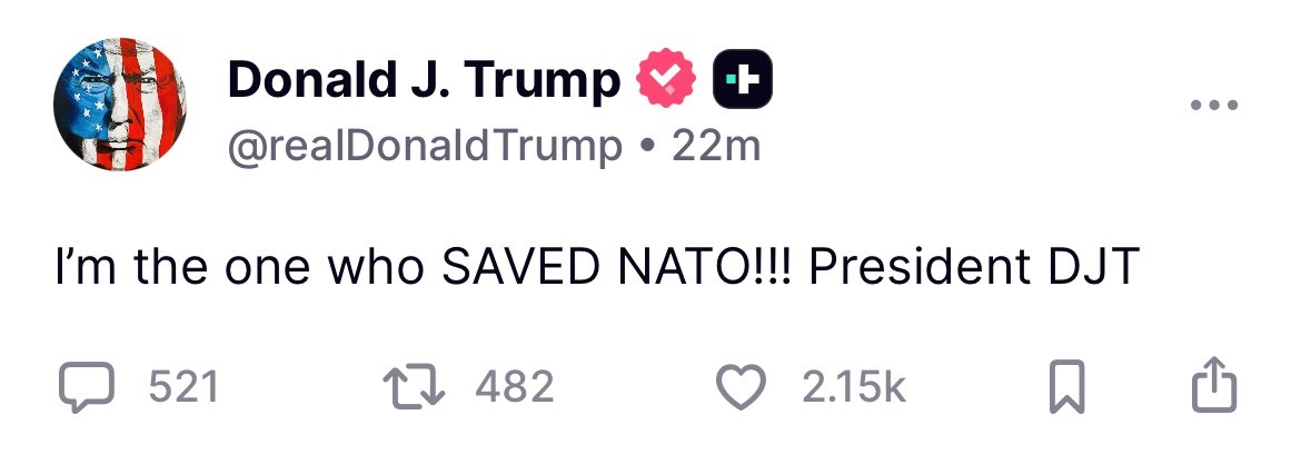 🗣 Я — тот, кто спас НАТО, — Трамп