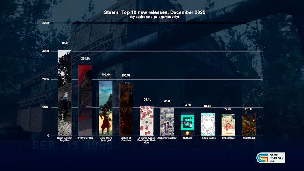 Составлен список игр, которые распродались самым большим тиражом среди всех новинок декабря в Steam. Очередной кооперативный хоррор, использующий микрофон как игровую механику. В этой игре запрещено кричать или громко говорить, а если вы это сделаете, то игра будет перезапущена или кричащий превратится в монстра, в зависимости от выбранного режима. Первая часть под названием My Summer Car уже стала одной из самых высоко оцененных игр в Steam. В новой части произошла не только смена сезона, но и ряд гейплейных обновлений и усложнений. Обновленная версия одной из самых популярных ММОРПГ в истории жанра. В целом в этом жанре можно по пальцам пересчитать проекты, которые не утонули в хейте игроков по разным причинам. Guild Wars как раз из тех игр, которые имеют больше положительных отзывов. И снова классическая олдскульная ММОРПГ, которая частично подтверждает выше сказанное. Хорошие продажи, но смешанные отзывы - клкассика жанра ММОРПГ. Расслабляющий кликер про разрушение астероидов, кото