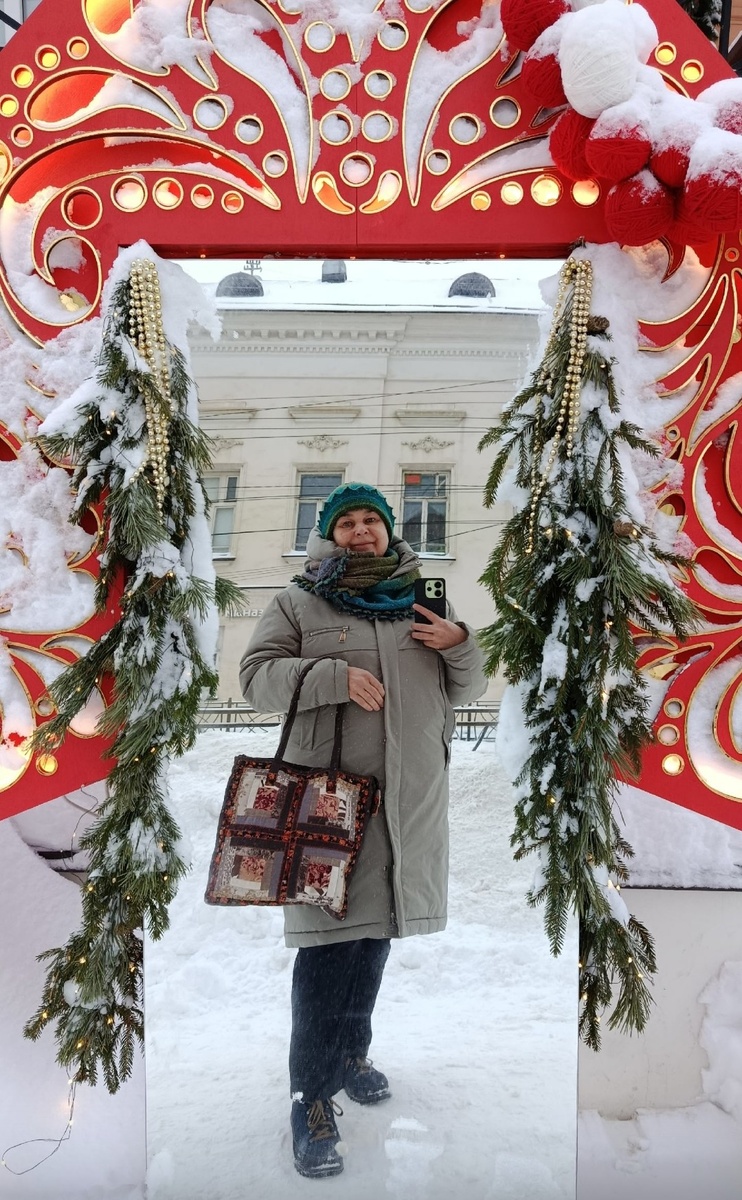 Пальто куплено прошлой зимой, нравится, уютное, лёгкое, тёплое. Отличный нейтральный фон для моих ярких лоскутных и вязаных творений, что немаловажно.