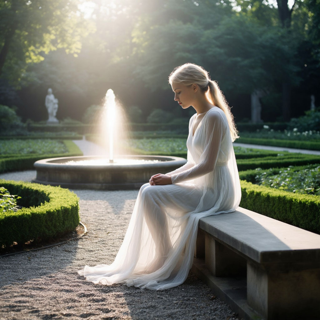 Каждое утро, когда первые лучи солнца золотили листву старого сада, Лилия приходила к фонтану. Белое платье с тонким кружевом облегало её стройную фигуру, словно облако, а длинные волосы мягко падали на плечи. Она садилась на влажный камень, касаясь пальцами прохладной воды, и слушала. Фонтан шептал тайны: плеск — как смех детства, бульканье — как забытые обещания. Здесь, пять лет назад, под ветвями старого дуба, он поцеловал её впервые. "Я вернусь, Лилия", — сказал он, уезжая в большой город. Но время текло, как эта вода, унося надежду. Сегодня шепот был громче. Лилия закрыла глаза, чувствуя тепло на коже. Вдруг — шорох шагов. Сердце замерло. Лилия резко открыла глаза. Из-за кустов роз вышел он — не юный любовник, а старый садовник Эдмунд. Сгорбленный временем, с морщинистым лицом и мудрыми глазами под густыми бровями, он держал секатор, как жезл. Седая борода топорщилась, а в кармане пиджака торчала трубка. "Доброе утро, мисс Лилия", — прогремел он басом, но с теплотой. "Опять шеп