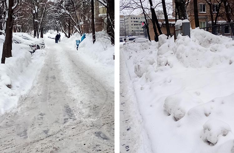 После каникул я отправился на работу. Но до рабочего места не дошёл. Нет, до метро я ещё вчера мог дойти, расчистили даже тротуары. Пришлось правда выбросить сигарету и поднять со льда женщину, но только одну. С тротуарами от дома до метро всё в порядке. На Ленинском и Косыгина тоже пройти можно и за ключи расписался. Но два корпуса оказались отрезанными от Большой Земли. Я дошел до надписи «МИНЫ» (неосторожно разрушил букву "М"), попытался протоптать тропу. Но высота снега от «по колено», скорость продвижения метр в минуту (до цели часа три, если сил хватит держать темп). Покурил, покормил знакомых ворон, поговорил с начальством, сдал ключи и пошёл домой. Трактор сломался, завтра попрошу лопату, до моей не добраться.