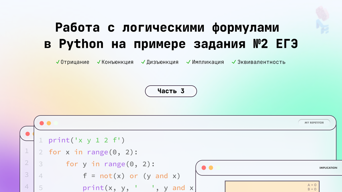 🎓 Логические формулы важно уметь решать как на ЕГЭ по информатике, так и в программировании. Задание № 2 ЕГЭ как раз предназначено для отработки этого умения.