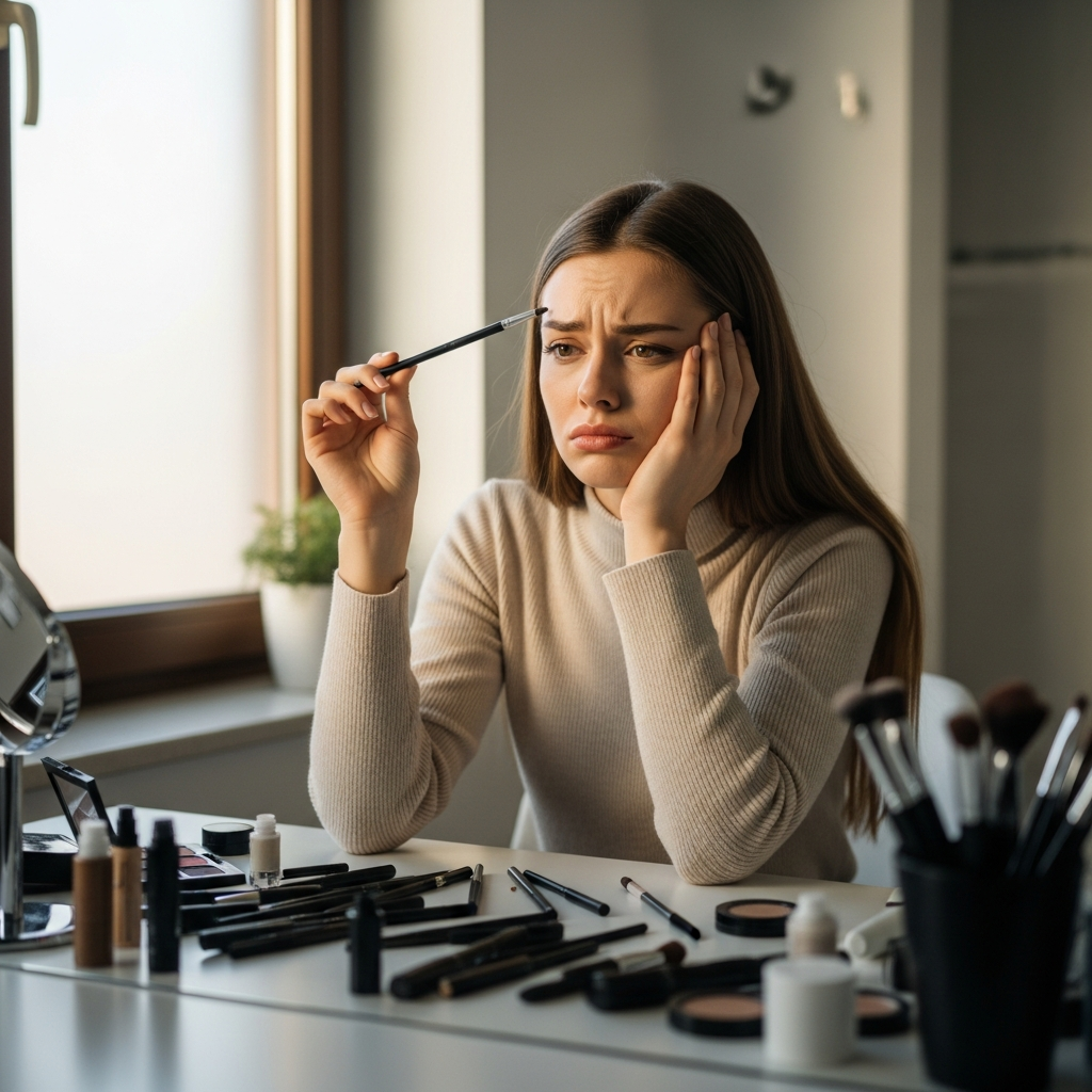 Есть ещё один момент, который часто упускают из виду при обсуждении утреннего макияжа. Ритуал с бровями — это не просто физическое действие. Это ментальная нагрузка. Вы должны быть сосредоточены, рука не должна дрожать, освещение должно быть правильным.
