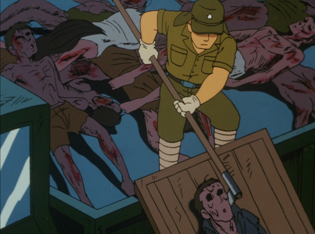 Как-то решил пересмотреть аниме, которое давно в детстве, ещё будучи школьниками, смотрели вместе с кузеном по тогдашнему телевидению в далёких 90-х. Называется "Босоногий Гэн" 1983 г. Что могу сказать. Либо на ТВ показывали версию, жёстко отцензуренную, либо моя детская психика заблокировала некоторые воспоминания, дабы уберечь меня от той жести, что там была. Создатели "Босоногого Гэна", явно изучили не одну сотню архивных материалов реальной бомбардировки японских городов, перед тем, как приступить к работе над произведением. В данном аниме, во всех подробностях показано, что происходит с людьми и животными во время и после ядерного взрыва на разном удалении от эпицентра. А также последствия, в зависимости от уровня облучения и заражения. Авторы не будут жалеть вашу тонкую натуру и покажут во всех красках ужасы применения ядерного оружия. Ниже небольшой лайтовый пример подобного: Остальные примеры шокирующих кадров вставлять сюда не стал, дабы не ставить хештег "жесть". Даже сейчас,