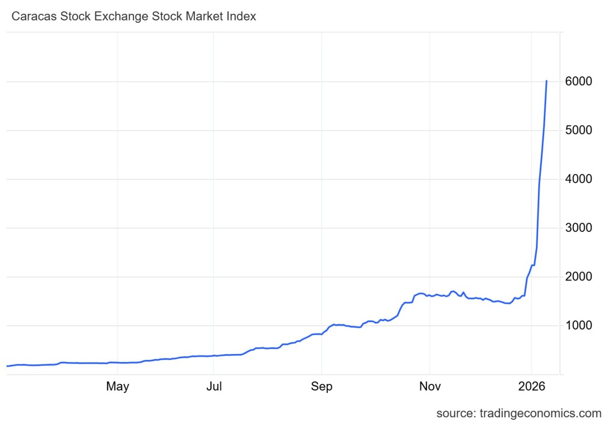 В долларах рост с начала года уже превысил 160%. Ралли началось и продолжается на фоне операции Трампа по задержанию Мадуро. Бурный рост рынка объясняется ожиданиями по значительному улучшению экономической ситуации в стране, особенно в контексте инфляции и курса национальной валюты. #Торги @if_news