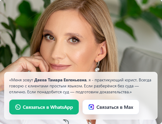 Позиционирование сайта — "Ваш личный юрист для сложных задач". Владелица, Тамара Евгеньевна Деева, представлена как практикующий юрист с 10+ лет опыта. Она подчеркивает индивидуальный подход: общение простым языком, предпочтение досудебного урегулирования, но готовность к суду с тщательной подготовкой доказательств.