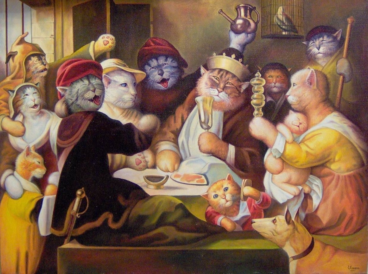 Эта моя картина из проекта <<Люди-кошки>>, была использована (разумеется с моего письменного разрешения) в качестве оформления обложки книги Юлии Артемовой "Ипостаси смеха".