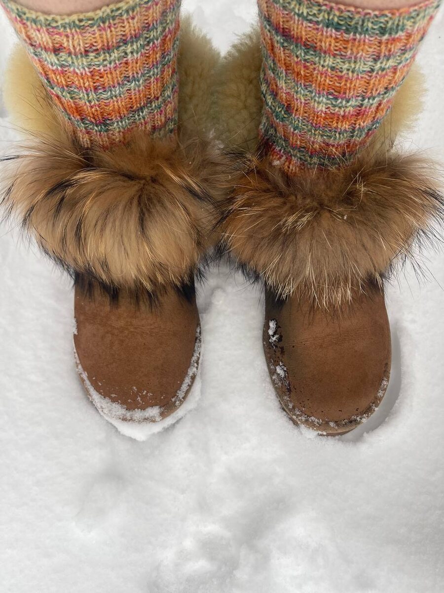 Подарок для дочки в ее Ugg. Долго , редко ( вязала только в машине) и на спицах 2,5мм ( 420/100) , но цель достигнута! Получился подарочек к старому новому году. А какая красота за городом . Снега очень много и все идёт идёт идёт… Где все те пессимисты, которые нам говорили в ноябре , что зимы в этом году не будет ?