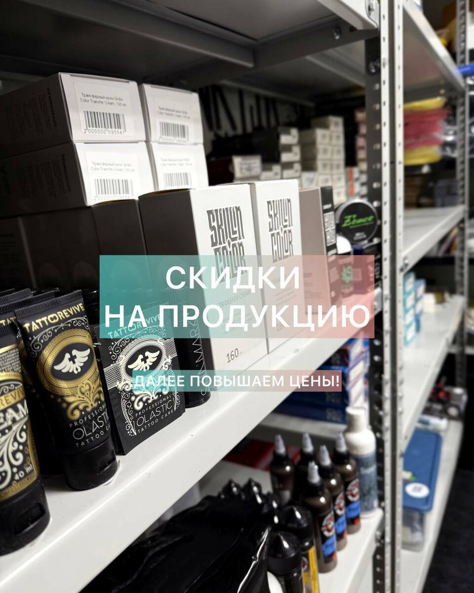 Это отличная возможность приобрести нужные вещи по выгодной цене. Хотим заранее предупредить: в ближайшее время мы планируем повысить цены на весь ассортимент магазина. Это связано с рядом объективных причин — ростом закупочных цен, логистическими издержками и общей экономической ситуацией. Поэтому, если вы давно присматривались к каким‑то позициям или планировали покупки, сейчас самое время сделать это с максимальной выгодой. Узнать более подробно о расходных материалах или записаться на сеанс можно чате @punktirtattoo или по телефону +7 999 969‑42‑19. Также у нас можно уточнить про аренду рабочего места, покупку или ремонт оборудования — https://punktirtattoo.ru. Контакты и отзывы — https://my.etag.store/Punktirtattoo. График работы студии: пн. – вс.: 11:00–20:00. м. Белорусская, Ленинградский проспект, 7, стр.