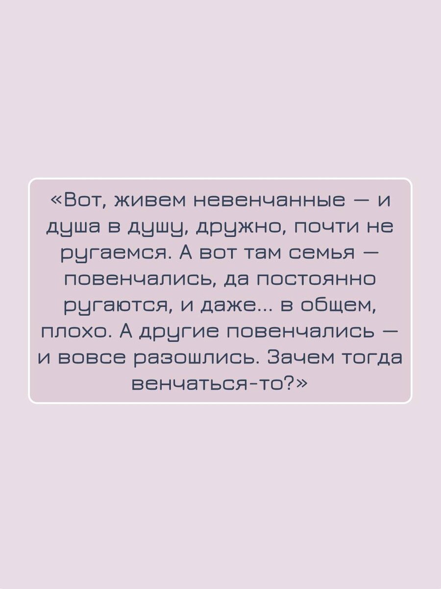 «Вот, живем невенчанные — и душа в душу, дружно, почти не ругаемся