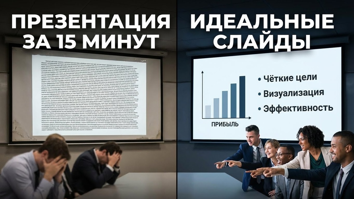 Обычно на это уходит 2–3 вечера. Вы мучаетесь: «Что вынести на второй слайд? Цель? Или сразу проблему? А куда деть таблицу из третьей главы?».