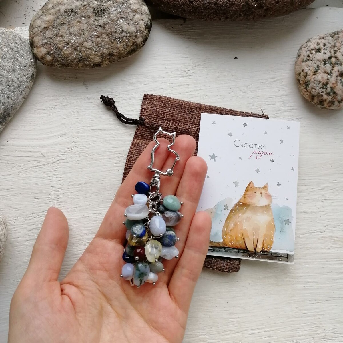 ♐. В нем цитрин для финсового благополучия, лазурит для защиты и удачи в любови, мукаит для семейного счастья, халцедон и агат для здоровья тела и духа. 🐾🐈⬛Крепление кошечка и подвеска лапка. Брелок подойдёт для ключей или в качестве обвеса для сумки или рюкзака. Можно сделать с другими камнями. #украшенияназаказ #брелокизнатуральныхкамней #подарокстрельцу #подарокдевушке #подарокна14февраля #украшенияскотиками