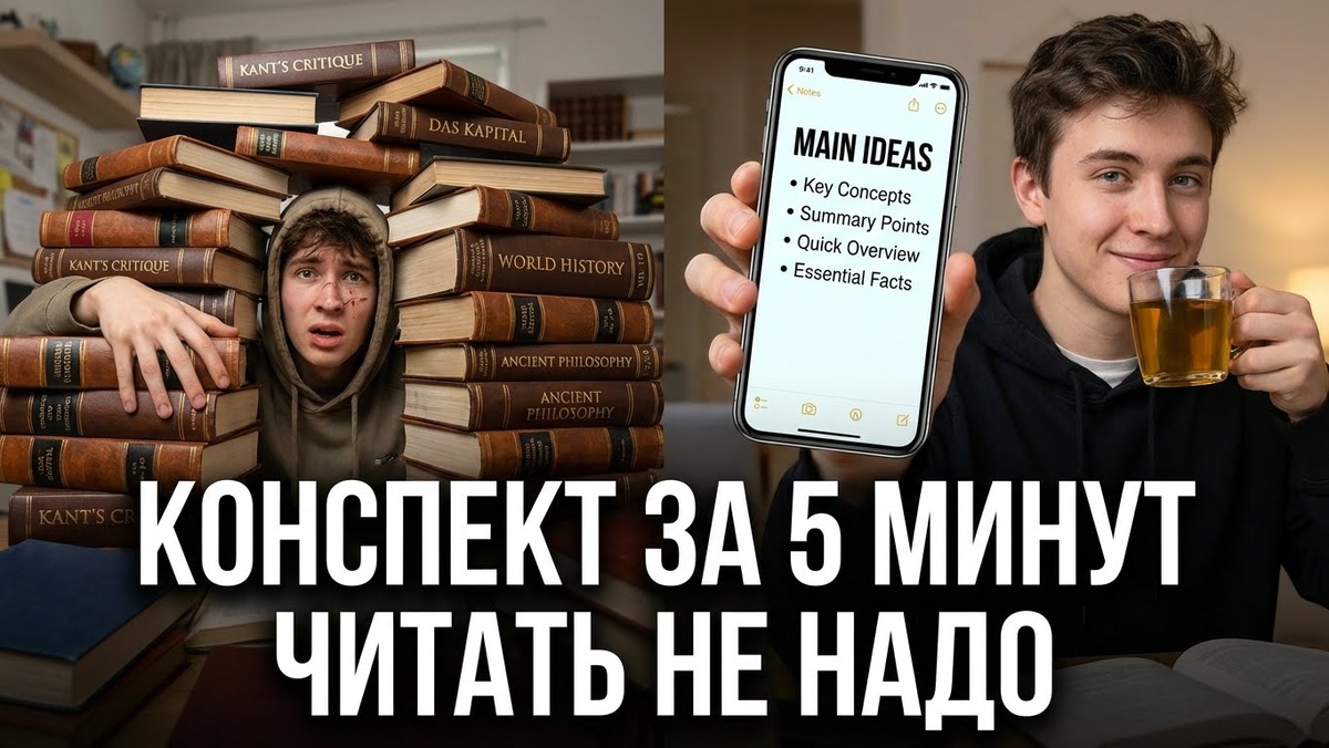 Если просто скачать «краткое содержание» с сайта для школьников — преподаватель сразу поймет. Там слишком примитивный язык. Вам нужно: Раньше это было невозможно без бессонных ночей. Теперь это задача на 10 минут для нейросети-анализатора текста. Сайты с краткими содержаниями (типа Briefly) дают пересказ сюжета. Но в научных книгах сюжета нет. Там есть идеи.