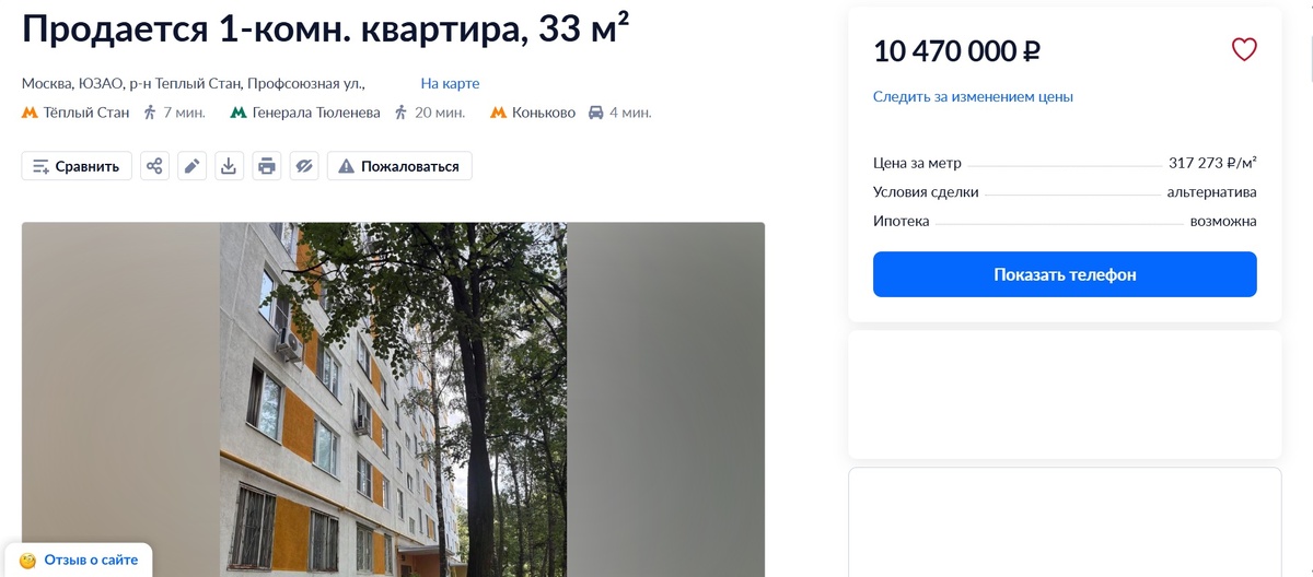 ТОП-5 самых доступных по цене “однушек” в ЮЗАО, внутри МКАД.