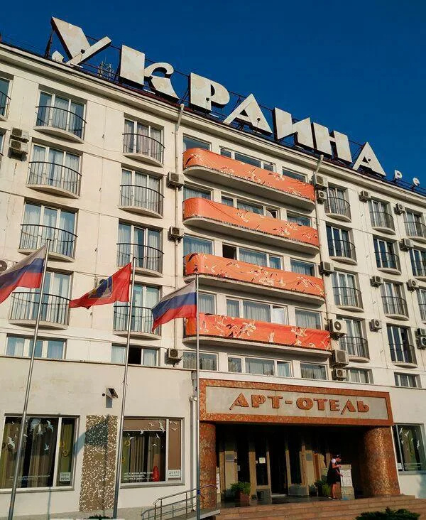 Не знаю по каким причинам в Советском Севастополе открыли гостиницу и ретро кинотеатр "Ук-на", но они действуют до сих пор. Правда гостиницу "Укр-на выкупила какая-то фирма из "материковой" России (так крымчане традиционно подчеркивают свою принадлежность к Крыму еще со времен Ук-ны), которая решила сменить это название. У многих гостей Севастополя, особенно после 2022 года это вызывало когнитивный диссонанс, когда они видели напротив гостиницы "Ук-на" красивое здание театра "Лавренёва Черноморского флота" с российским флагом на шпиле. Кстати многие севастопольцы до воссоединения Крыма с Россией с ностальгией смотрели на российский флаг, который гордо висел напротив гостиницы "Ук-на", как бы бросая вызов фанатам "Ук-ны". Ярые наци.оналисты из Ук-ны неоднократно приезжали в Севастополь и устраивали акции протеста против пребывания Черноморского флота в Севастополе и российские флаги для них были как "красная тряпка" для быка, вызывая у них неподдельную агр.ессию. Второй знаменитый объе