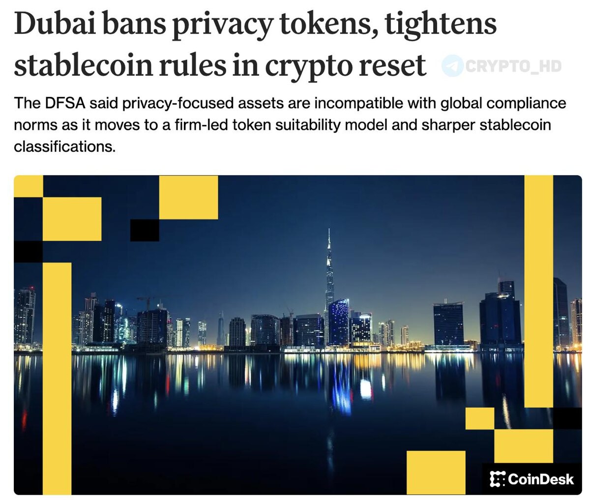 Финансовый регулятор страны ввел запрет на использование конфиденциальных крипто-сервисов в Международном финансовом центре Дубая. Под запрет попали: • Приватные криптовалюты и инструменты анонимизации. • Любые операции с ними, включая торговлю, рекламу, фонды и деривативы. Причина – несовместимость с требованиями по AML и санкционному комплаенсу: анонимные транзакции не позволяют идентифицировать отправителя и получателя. Crypto Headlines