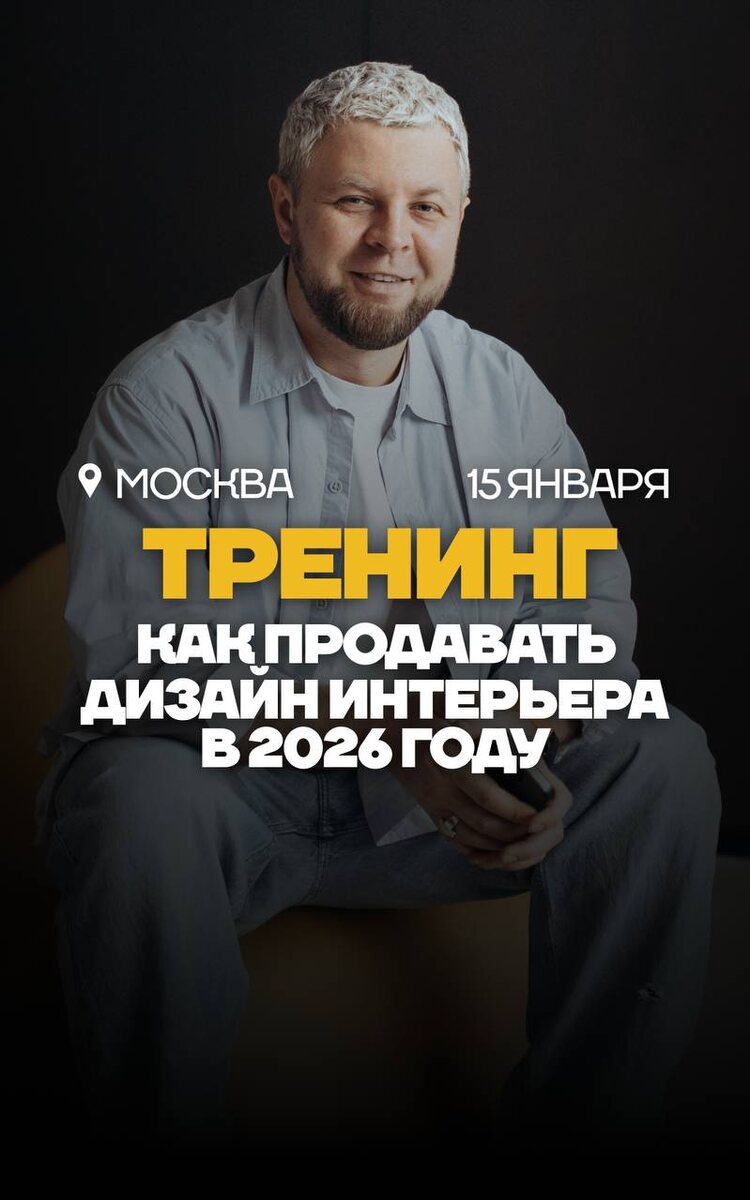 У нас состоится мастер-класс с Юрием Ереминым «Как продавать дизайн интерьера в 2026 году» ПРОГРАММА МЕРОПРИЯТИЯ: ✅МАСТЕР-КЛАСС «КАК ПРОДАВАТЬ ДИЗАЙН ИНТЕРЬЕРА В 2026 ГОДУ», ВЫ ПОЛУЧИТЕ ПОШАГОВЫЙ ПЛАН, КАК ВЫЙТИ НА ПРИБЫЛЬ 1+МЛН НА ДИЗАЙНЕ ✅ТРЕНИНГ ПО ПРОДАЖАМ — ИСКУССТВО САМОПРЕЗЕНТАЦИИ, ВЫ НАУЧИТЕСЬ ПРЕЗЕНТОВАТЬ СЕБЯ КЛИЕНТУ. ТРЕНИРОВКИ ЗВОНКА КЛИЕНТУ. ✅РАЗБОРЫ ВАШИХ АККАУНТОВ С ПЕРСОНАЛЬНЫМИ РЕКОМЕНДАЦИЯМИ (ДЛЯ УЧАСТНИКОВ ТАРИФА МАСТЕР-КЛАСС+ПЕРСОНАЛЬНЫЙ РАЗБОР) ВАС ЖДУТ 7 ЧАСОВ ЛУЧШЕГО ТРЕНИНГА ПО ПРОДАЖАМ ДЛЯ ДИЗАЙНЕРОВ ИНТЕРЬЕРА. 📍МЕСТО ПРОВЕДЕНИЯ: Г. МОСКВА, ГАЛЕРЕЯ ТВИНСТОР, САЛОН САНТЕХНИКИ SANTEAM, 2 этаж секция 45 D ТАЙМИНГ МЕРОПРИЯТИЯ: 11:00-13:00 МАСТЕР-КЛАСС 13:00-14:00 ПЕРЕРЫВ НА ОБЕД 14:00-18:00 ПРАКТИКУМ ПО ПРОДАЖАМ И РАЗБОРЫ 18:00-19:00 НЕТВОРКИНГ РЕГИСТРАЦИЯ 👇 https://mossebo.getcourse.ru/mk_15