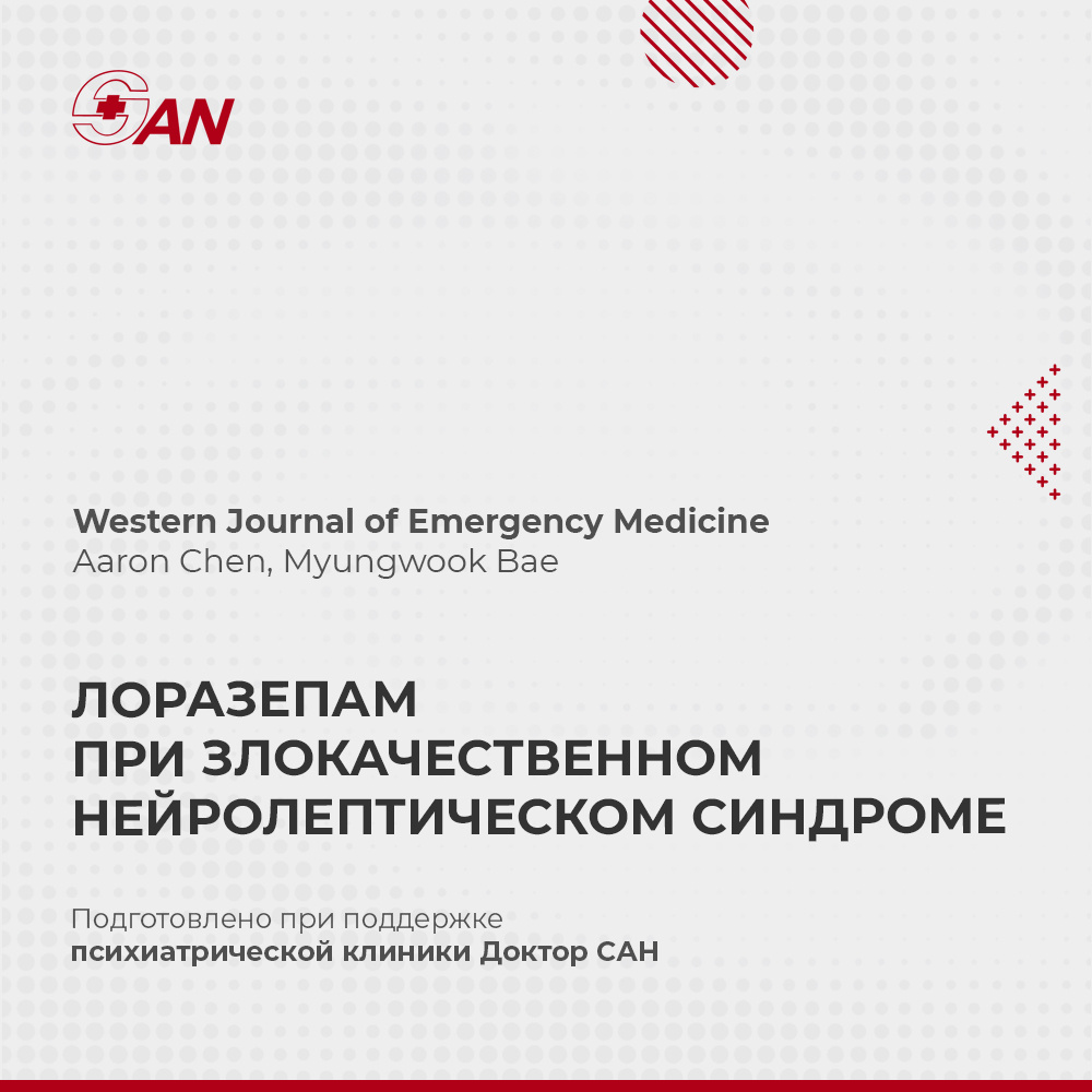 В журнале Western Journal of Emergency Medicine опубликован систематический обзор, посвящённый применению лоразепама при типичном и атипичном злокачественном нейролептическом синдроме (ЗНС), с акцентом на диагностику и ведение пациентов в условиях отделений неотложной помощи. Клиническое улучшение на фоне терапии лоразепамом отмечено у 12 из 15 пациентов. При атипичном ЗНС ответ зарегистрирован у 5 из 6 пациентов: у четырёх — значимое улучшение (редукция спутанности сознания, ажитации, нейромышечных симптомов) наступало в течение 72 часов, включая два случая — в первые 24 часа. При типичном ЗНС положительный эффект наблюдался у 7 из 9 пациентов, однако клинический ответ формировался медленнее. В отдельных случаях сохранявшаяся кататония требовала последующего применения электросудорожной терапии. Полученные данные указывают, что лоразепам может обеспечивать более быстрое клиническое улучшение при атипичном ЗНС по сравнению с ожидаемым течением при одной лишь поддерживающей терапии. Сте