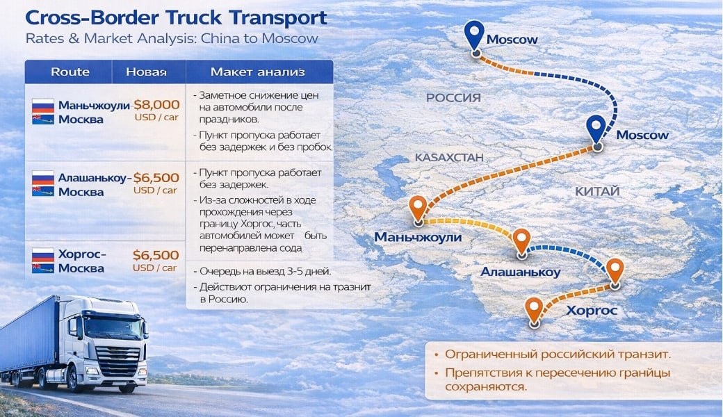 Похоже, китайские братишки для создания рекламных материалов используют какой-то лютый ИИ-генератор, обученный на архивных мемах. ▫️Географию он, конечно, игнорирует - умудрился дважды изобразить Москву. Или это он шестой палец карте России дорисовал? ▫️Под российским флагом красуется явно чей-то ещё. Напоминает флаг бывшей британской колонии, но Россия, на наше счастье, в этот список никогда не входила. ▫️Грузовик стоило бы перевести как truck, а не car. А то клиенты подумают, что вы попутно продаёте китайские б/у легковушки по дешёвке и с перегоном. ▫️А фраза «ограниченный российский транзит» - это вообще шедевр двусмысленности. Если речь про очереди на погранпереходах, то вы же сами пишете, что в Маньчжурии всё прекрасно. Загадка. Надеемся, наши рекламные материалы разбирают также тщательно, ибо это показатель признания. И ждём следующих шедевров 😁
