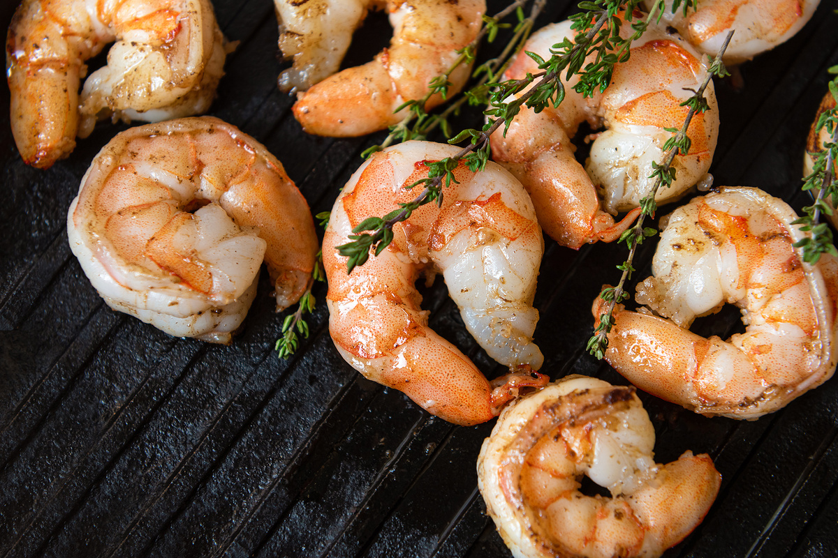 Накануне Нового года ко мне обратилась одна из наших подписчиц с просьбой подсказать рецепт праздничного блюда из креветок. Сейчас в торговой сети можно найти самые разнообразные креветки. Сырые и варено-замороженные, в панцире с головой и очищенные, мелкие и крупные: королевские, тигровые. Этот морепродукт хорош в самых разнообразных блюдах. В составе холодных салатов и сложных бутербродов, в горячем соусе для пасты или ризотто, просто в жареном виде. И каждое из этих блюд вполне можно назвать праздничным. Конечно, в первую очередь из-за значительной цены основного ингредиента. Я же советую не скупиться и приобрести для данного рецепта сырые, крупные креветки, лучше аргентинские. Если не удастся найти очищенные, то потрудитесь очистить их самостоятельно, удалив панцирь, голову и обязательно трубку пищевода. Промойте креветки под струей холодной воды, хорошо обсушите. Приготовьте маринад: смешайте в миске растительное масло с соком лимона, соевым соусом и тертым чесноком. Опустите в