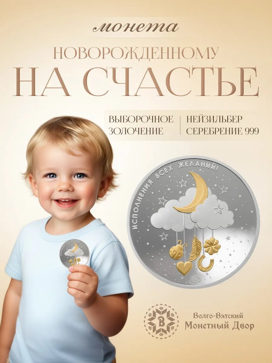 Ищете особенный, запоминающийся и по-настоящему ценный подарок для новорожденного? Что-то большее, чем очередной комплект одежды или погремушка? Подарок, который не просто будет пылиться на полке, а станет семейной реликвией, оберегом и благословением на всю жизнь. В этой статье мы расскажем об идеальном решении — именной монете-талисмане «Новорожденному на счастье» от Волго-Вятского Монетного Двора. Традиция дарить монету на рождение или крестины уходит корнями в глубокую древность. Серебро и золото всегда считались металлами, оберегающими от сглаза, несущими чистоту и благополучие. В отличие от многих других подарков, которые быстро теряют актуальность, такая монета: Эта не простая памятная медаль, а сложное художественное произведение, в котором каждая деталь продумана. Монета отчеканена по высшему стандарту качества — «пруф-лайк». Это означает: Художники использовали смешение техник для создания «живого» изображения: На аверсе монеты крупно и четко нанесена самая важная надпись —