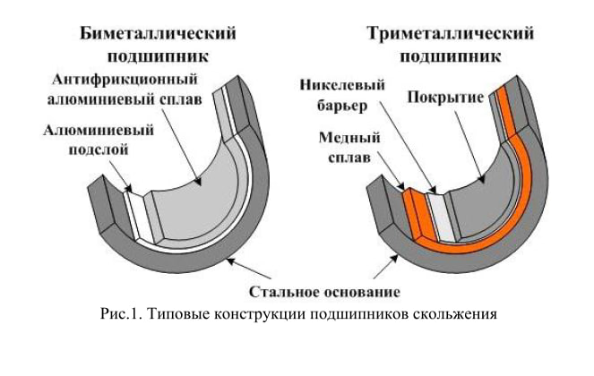 Вкладыши. Многострадальные вкладыши. Какую кучу, совсем не заслуженной, критики они принимают на себя. Застучал мотор - виноваты вкладыши. С какого перепугу они вдруг стали виноватыми ? Когда они самые первые пострадавшие. Какого только бреда не встретишь в тырнетах, про бедных вкладышей. Естественно абсолютно не заслуженного. Впервые вкладыши, в таком виде как они есть, были изобретены в 1839-м году. С тех пор конструкция вкладыша никак не изменилась. Каких-то абсолютно новых, конструктивных, решений нет и по нынешний день. Это всё так же стальная лента с нанесённым на неё одним или двумя слоями сплавов с антифрикционными свойствами. Это всё так же Олово, Медь, Свинец, Сурьма и Алюминий. Меняется лишь пропорции металлов в сплавах. Но как-то радикально изменить качество это не способно. Некоторые производители начали лепить антифрикционный слой из полимеров. но никакой, значимой, пользы от этого особо и нет. Короче, за последние 185 лет ничего, принципиально, нового изобретено не было.