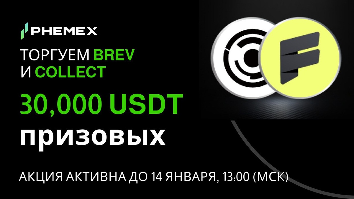 ! 📅 До 14 января, 13:00 (МСК) 🎫 Нажмите "Зарегистрируйтесь для участия" на странице акции https://phemex.com/ru/events/token-fiesta/791?group=6006&referralCode=DFC6T7 Событие 1: 10,000 USDT 💰! 🔸 Торгуйте 100+ USDT на фьючерсах токенами акции → 🎁100 USDT (Для новичков) 🔸 Торгуйте 1,000+ USDT на фьючерсах токенами акции ежедневно в течение ≥3 дней → 🎁20 USDT 🫶 Приглашайте 2 друзей торговать на фьючерсах токенами акции 100+ USDT → 🎁20 USDT Событие 2: Конкурсу на фьючерсах, 20,000 USDT💰! 🔸 Топ 1,000 трейдеров, по объему торговли BREVUSDT, COLLECTUSDT, но не менее 5,000 USDT, разделят призовые.