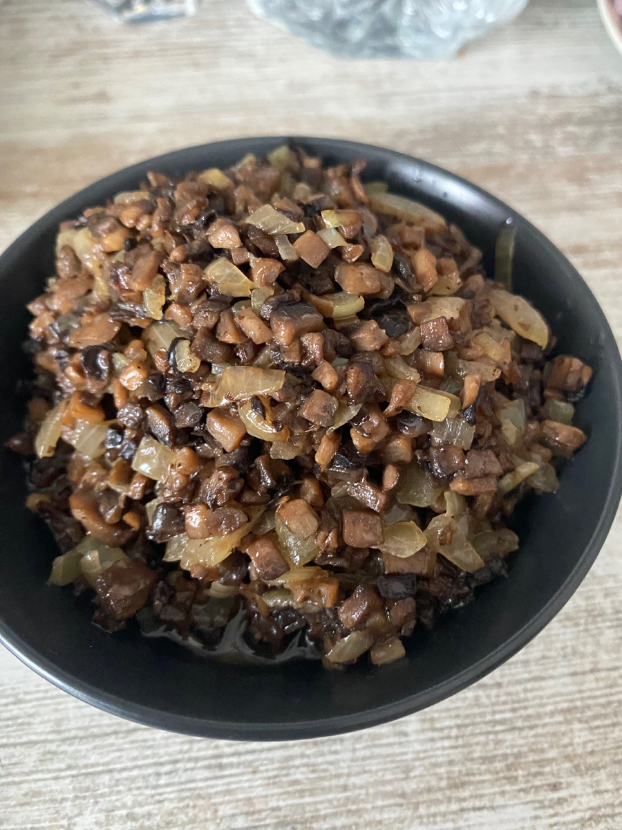 Я добавила соли, когда жарила грибы, а потом добавила соленый бекон. Ух, получился жюльен к пивному столу.