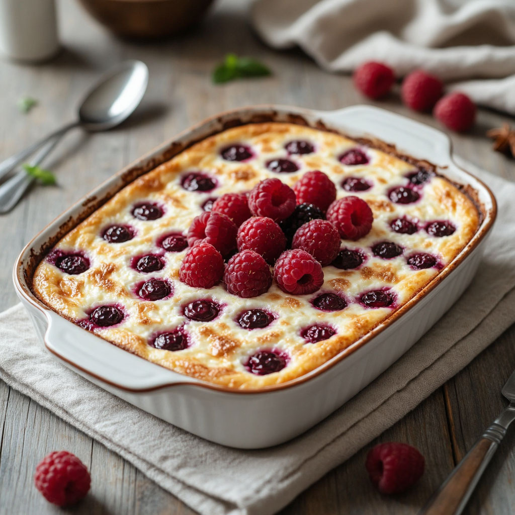 - Без мёда: если вы ограничиваете сладкое, исключите мёд — запеканка останется вкусной за счёт ягод.