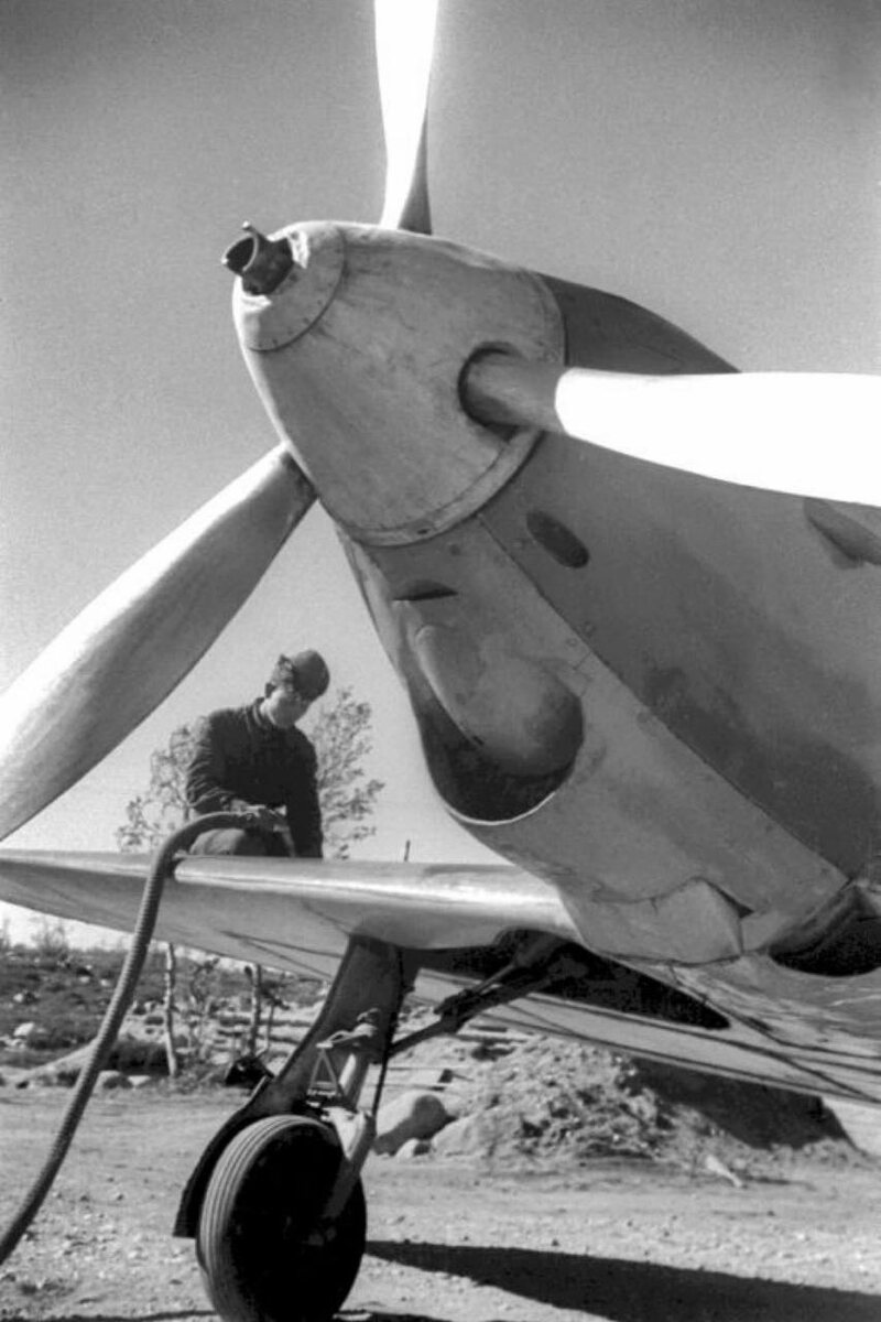 Заправка истребителя Як-1 из 20-го истребительного авиационного полка Военно-воздушных сил Северного флота. 1942 год.