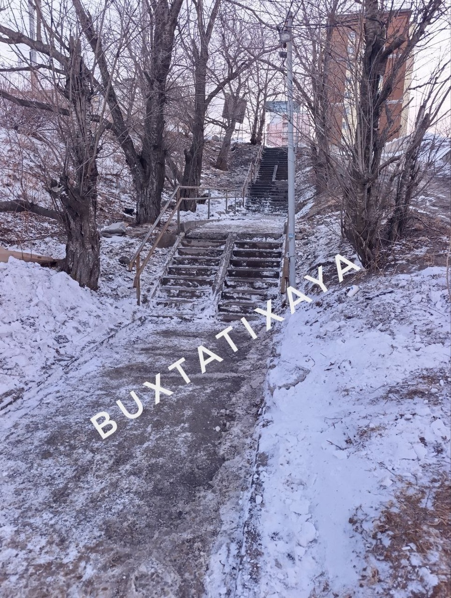 Почистили только верхнюю часть затопленной и замëршей канализацией лестницу, от Добровольского 33 к Командорской 11 📍@yurovmedia