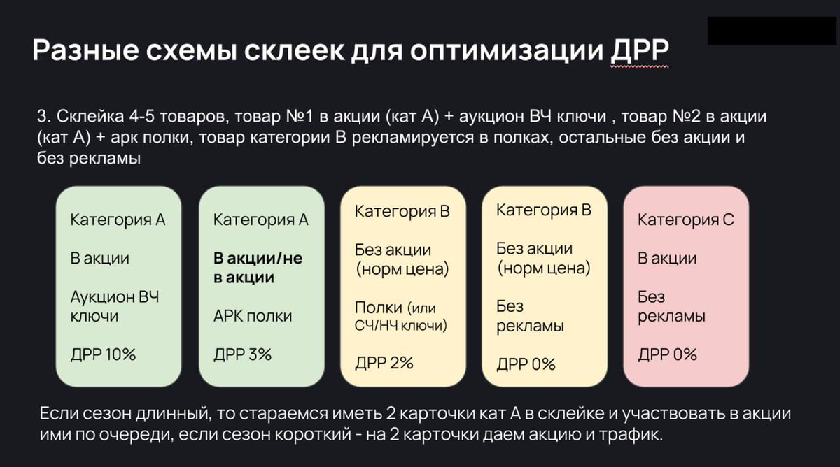 Склейки на маркетплейсах существуют не первый месяц. Инструмент давно известный и массово используемый. Но при этом не все понимают, когда лучше совмещать карточки, а когда это опасно снижением заказов. Разберем сегодня вместе👇 — само количество ни о чём не говорит. Хорошо работать могут склейки как из двух позиций, так из десяти и больше. ⚡️В любой нормальной склейке есть якорь - топ-артикул. Если его нет - это не склейка, а складская свалка под одной карточкой, потому что задача склейки - закрыть основные ожидания покупателя внутри одной карточки. На практике это означает: Без попытки запихнуть всё, что лежит на складе. Универсальной схемы не существует. Количество товаров в склейке может меняться в зависимости от ниши, задач и показателей склейки. Примеры: Закрыли базовый спрос на варианты - отлично, больше не добавляем, можем переборщить. Рабочую склейку всегда видно по цифрам: 1. К топу цепляют откровенные неликвиды