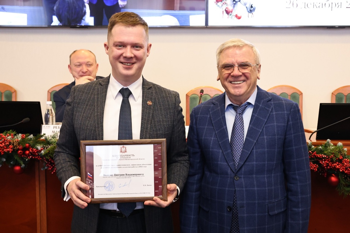 В Законодательном собрании Нижегородской области прошел итоговый семинар для помощников депутатов, посвященный результатам работы в 2025 году. Итоги работы помощников депутатов в округах за 2025 год подвели в Законодательном собрании Нижегородской области. Итоговый семинар прошел в зале заседаний регионального парламента. В мероприятии приняли участие председатель Законодательного собрания Евгений Люлин и депутат, руководитель аппарата ЗСНО Максим Ребров. В ходе встречи состоялась церемония награждения наиболее активных помощников депутатов. Им вручили благодарности и благодарственные письма председателя Законодательного собрания за добросовестную работу и вклад в деятельность парламента. Евгений Люлин отметил, что помощники депутатов играют важную роль в работе с жителями округов и являются кадровым резервом для органов власти. Ключевой темой семинара стало обсуждение депутатских инициатив, реализованных в 2025 году в рамках проекта «Событие года». Были представлены патриотические, со