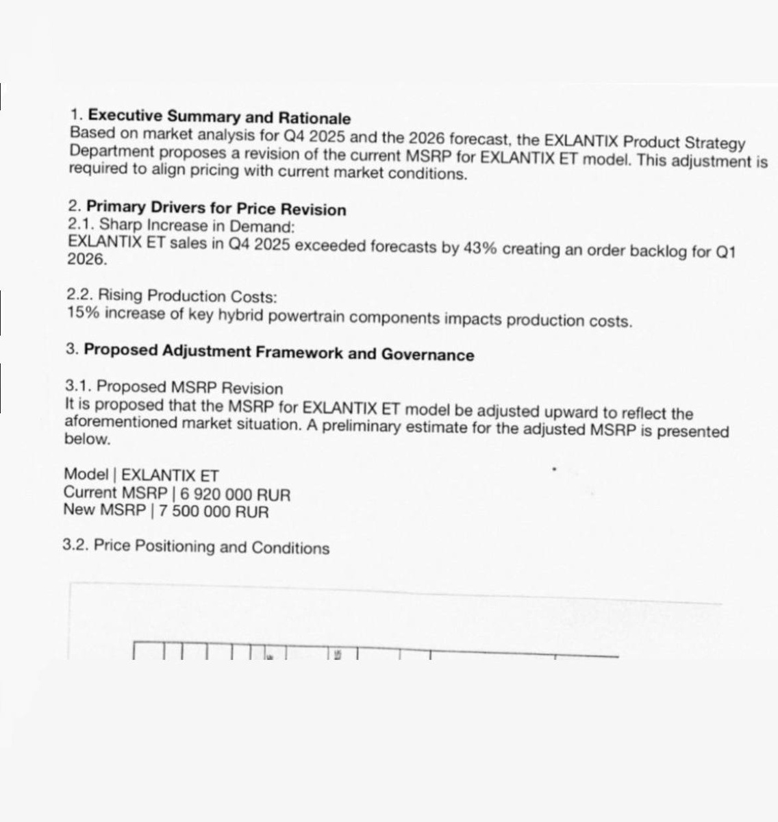 EXEED EXLANTIX подорожает в начале 2026 года: причины и цифры Компания EXEED планирует скорректировать цены на модель EXLANTIX ET в первом квартале 2026 года. Рассказываем, что известно. Почему меняют цены? Основная причина — резкий рост спроса. В IV квартале 2025 года фактические продажи EXLANTIX ET превысили внутренний план на 43 %, из‑за чего сформировался лист ожидания на I квартал 2026 года. Кроме того, на ценообразование повлиял рост себестоимости: стоимость ключевых компонентов гибридной силовой установки увеличилась на 15 %. Насколько вырастет цена? Планируется повышение рекомендованной розничной цены (MSRP) EXEED EXLANTIX ET: