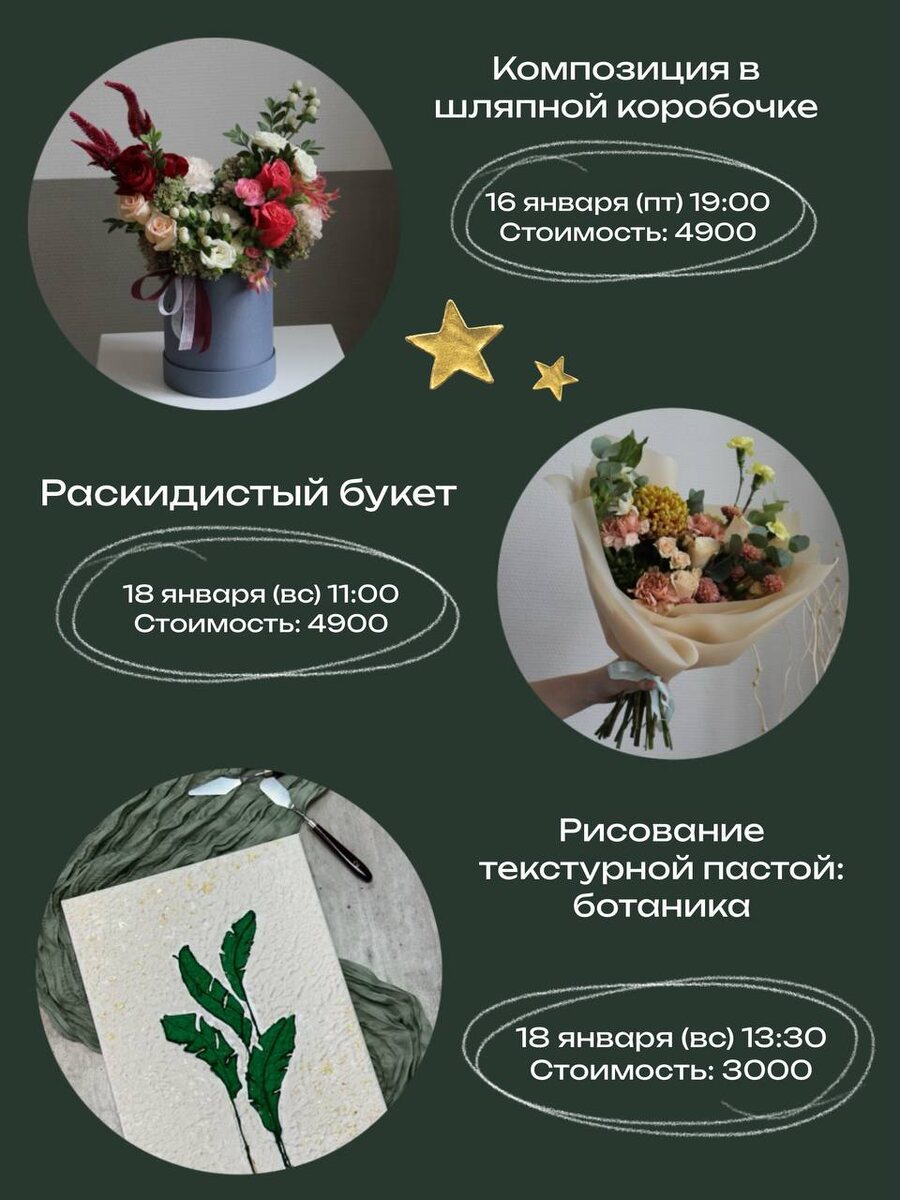 🗓️ 👉🏻 Записаться Если эти даты вам не подходят, то мы ждём вас на … ⭐️Индивидуальное занятие Стоимость: от 7000 ⭐️Занятие для двоих Стоимость: от 9000(за двоих) ⭐️Занятие для вашей компании Стоимость: от 3800(за одного) С выбором удобной даты и времени! Выбрать формат и записаться 👈🏻