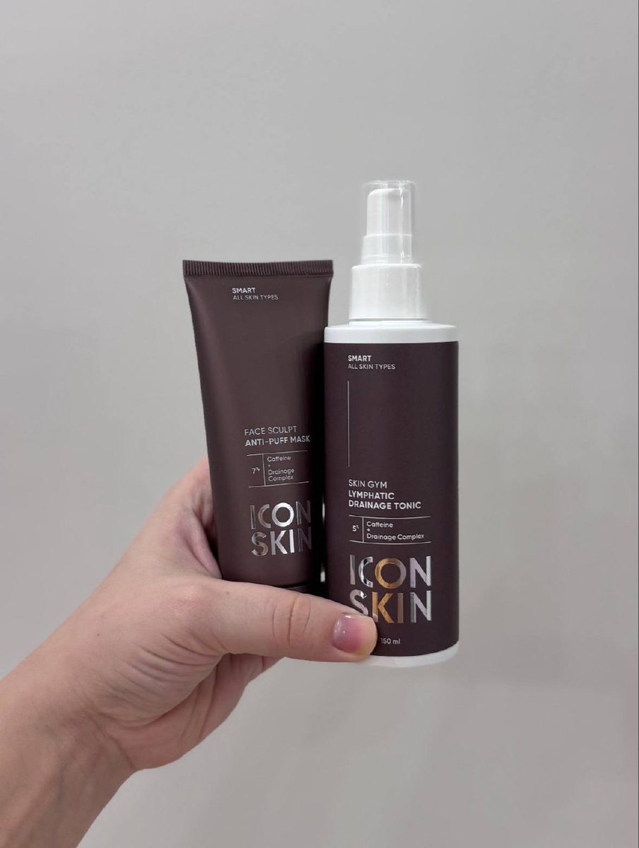 ?🫣✨ я сегодня спасалась вот этой парой от ICON SKIN: лимфодренажная маска + тоник для лица🤍 активные компоненты⬇️ • кофеин – улучшает лимфоотток, снимает припухлость • троксерутин – повышает эластичность сосудов • комплекс аминокислот – увлажняет, повышает упругость и эластичность • ментол – придает ощущение свежести эффект мне понравился! лицо стало визуально более собранным, свежим и без припухлости🤩