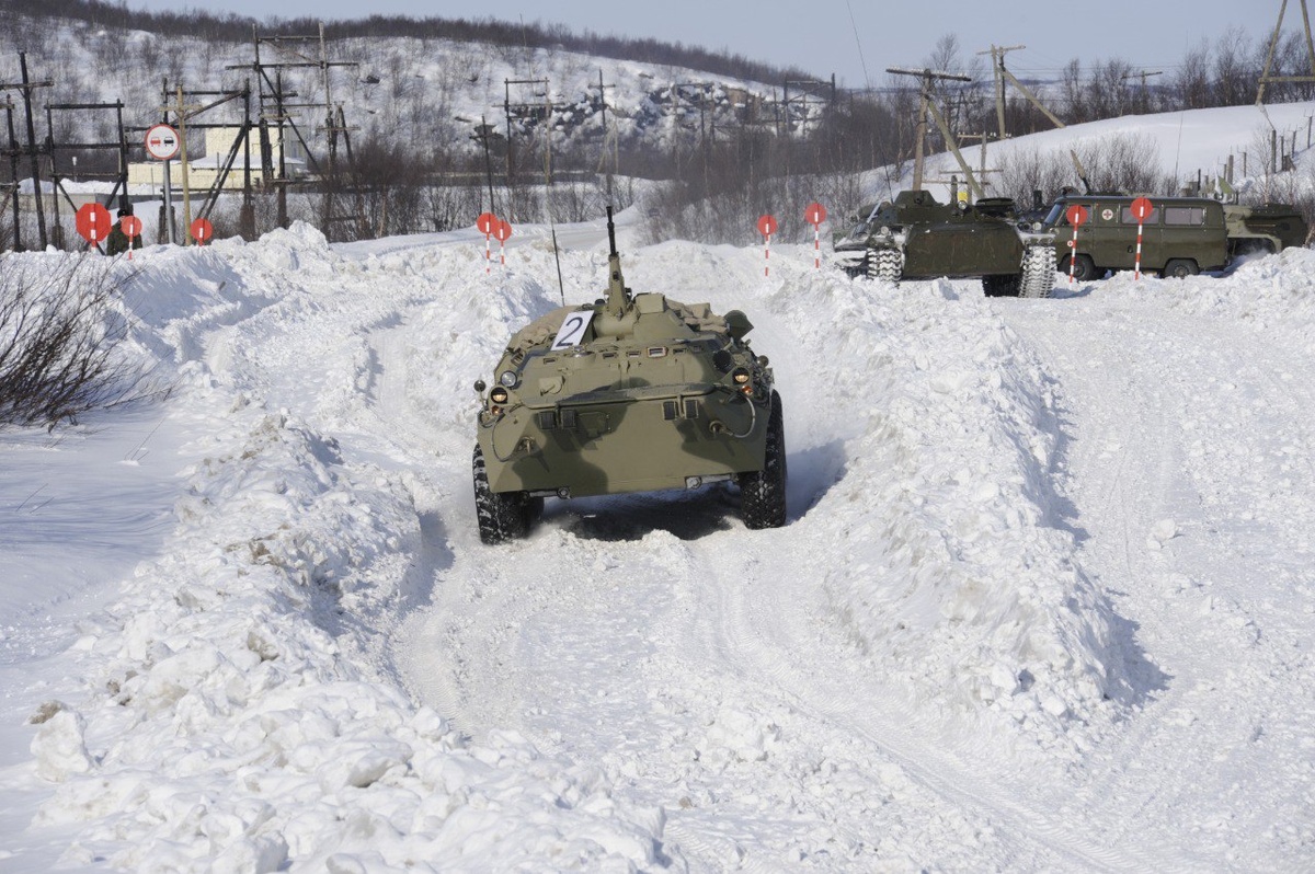 На одном из полигонов отдельной гвардейской бригады морской пехоты Северного флота военнослужащие провели занятия по вождению автомобильной и гусеничной техники по труднопроходимым заснеженным участкам местности на различном ландшафте Заполярья. Также водители учились ориентироваться на местности в темное время суток в условиях светомаскировки и оказывать помощь застрявшей в снегу технике, сообщает пресс-служба СФ. Подобные занятия развивают внимание и концентрацию, позволяют выработать необходимые навыки эксплуатации военной техники в экстремальных условиях Арктики. Фото: пресс-служба СФ.