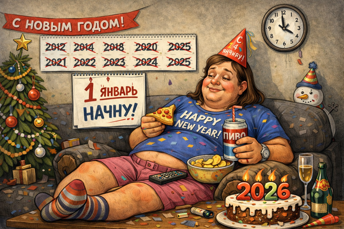 Этот человек живёт в цикле «завтра». 1 января, с понедельника, после праздников, со следующего месяца… Календарь уже устал от обещаний, а лишние килограммы — нет. Что делать? Портрет: