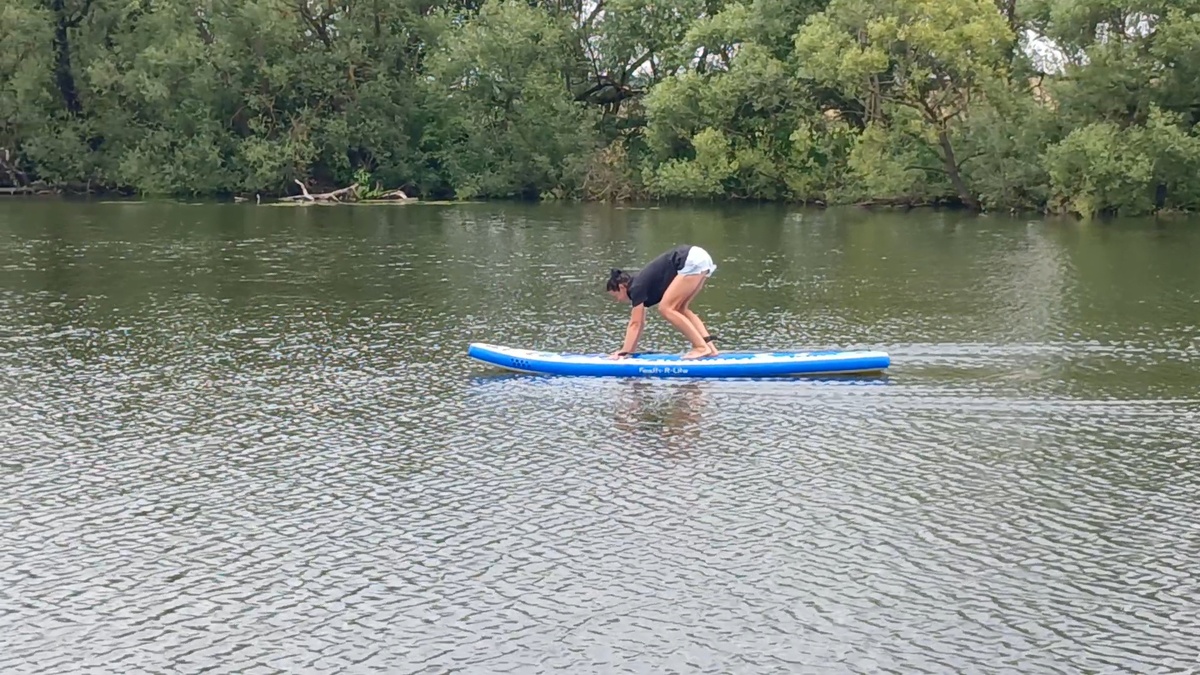 Новичкам на сапах пришлось тяжело - был ветер и похмелье)). Какой из этих факторов оказался решающим я не знаю, но в тот день встать на ноги ни у кого не получилось, так и катались.