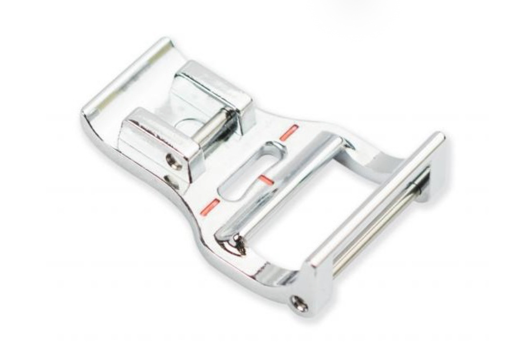 Компания Aurora производит швейную технику и аксессуары для неё. Каждая швейная машина имеет определенный набор лапок, которые входят в комплект. Это, как правило, лапки для выполнения определенных функций, таких, как: прямая строчка, зигзаг, оверлочные строчки, для потайной строчки, для выполнения петли. В разных моделях возможно и другие. Мы разберем лапки для творческих проектов. Лапка для настрачивания широкой ленты, тесьмы Aurora (AU-165) С помощью этой лапки можно пришивать ленту и тесьму шириной до 16 мм, а также пришивать тесьму в технике синель. На передней части лапки подошвы располагается паз, шириной 16 мм. В зоне игольного отверстия нанесены красные насечки: • Две горизонтальные справа и слева от игольного гнезда напротив иглы. • Спереди игольного гнезда, напротив иглы в позиции «0». Эти насечки позволяют начинать шов с конкретной точки. При пришивании тесьмы или кружева можно использовать прямую строчку, зигзаг или декоративную строчку. При пришивании тесьмы в технике си