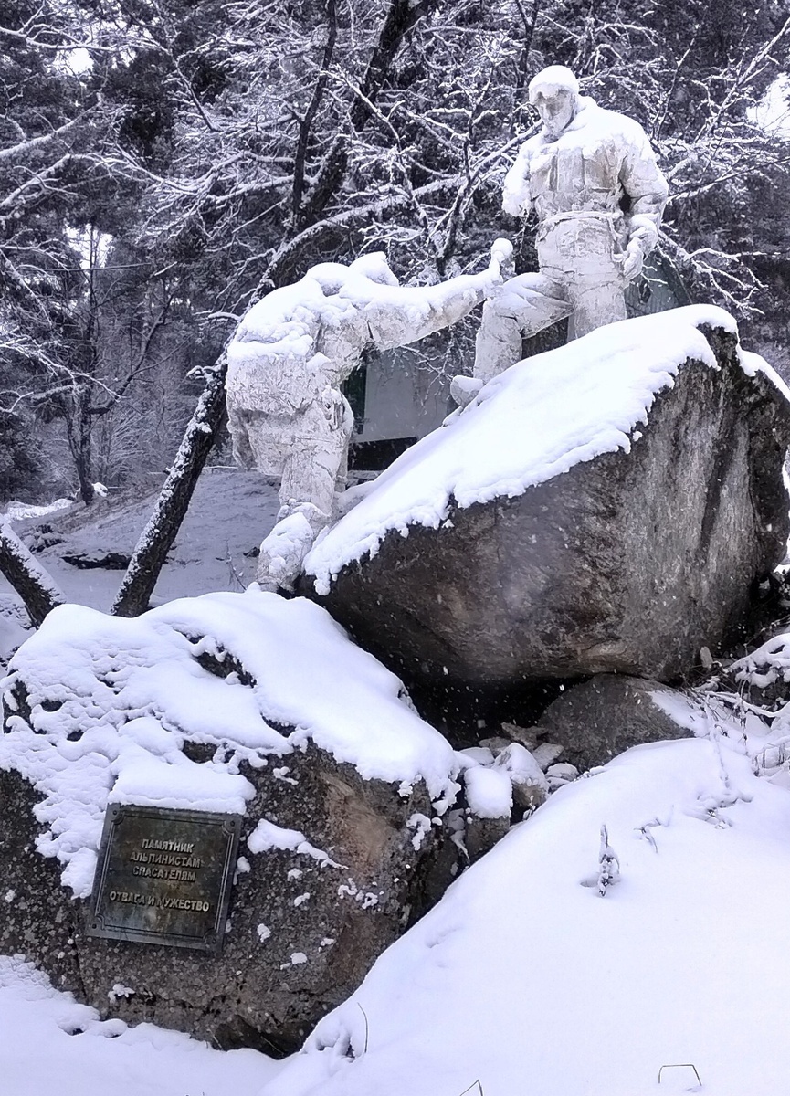 ❄️ Памятник альпинистам-спасателям — не просто скульптура, а гимн отваге, высеченный ветром и льдом
