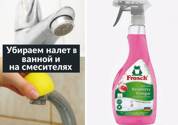 Всё гениальное — просто, и главные помощники уже есть на кухне! 🍋🧴 🍋 Лимонный способ: Выжимаем сок, пропитываем им ткань, оборачиваем кран и оставляем на 1-2 часа (либо используем раствор лимонной кислоты). После этого смываем горячей водой — и вуаля! 🧴 Уксусный способ (для самых стойких отложений): Ткань смачиваем в неразбавленном уксусе, оборачиваем кран и тоже оставляем на пару часов. Чтобы потом не пахло уксусом, просто посыпьте немного соды, протрите и смойте. А вот лайфхак из недавно прочитанной статьи! 🪙 Монетка в помощь: для тонкого налёта в труднодоступных местах аккуратно используйте ребро монеты. Главное — без фанатизма, чтобы не поцарапать поверхность! Из покупных вариантов я люблю средство Frosch Roseberry Vinegar anti-calc — тот же уксус, но с приятным малиновым ароматом! 🍓 Работает отлично, а запаха едкого нет, справляется очень быстро. Ищите на маркетплейсах. А вы что используете для борьбы с таким налётом? Давайте обменяемся опытом! 💬